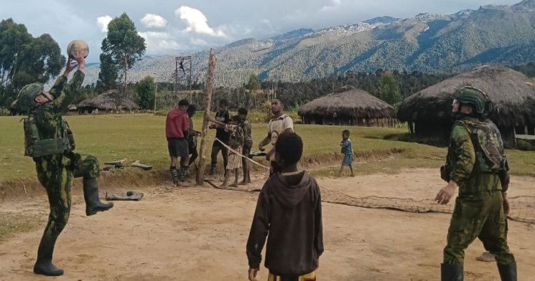 LANNY JAYA - Tawa riang anak-anak dan semangat membara para pemuda berpadu indah di lapangan sederhana berlatar pegunungan hijau Papua Pegunungan. Di Kampung Andugume, Distrik Wano Barat, Kabupaten Lanny Jaya, Kamis (30/4/2026), Satuan Tugas (Satgas) Yonif 408/Suhbrastha (Sbh) Titik Kuat Andugume memilih cara unik untuk membangun kedekatan: menggelar pertandingan voli bersama warga.